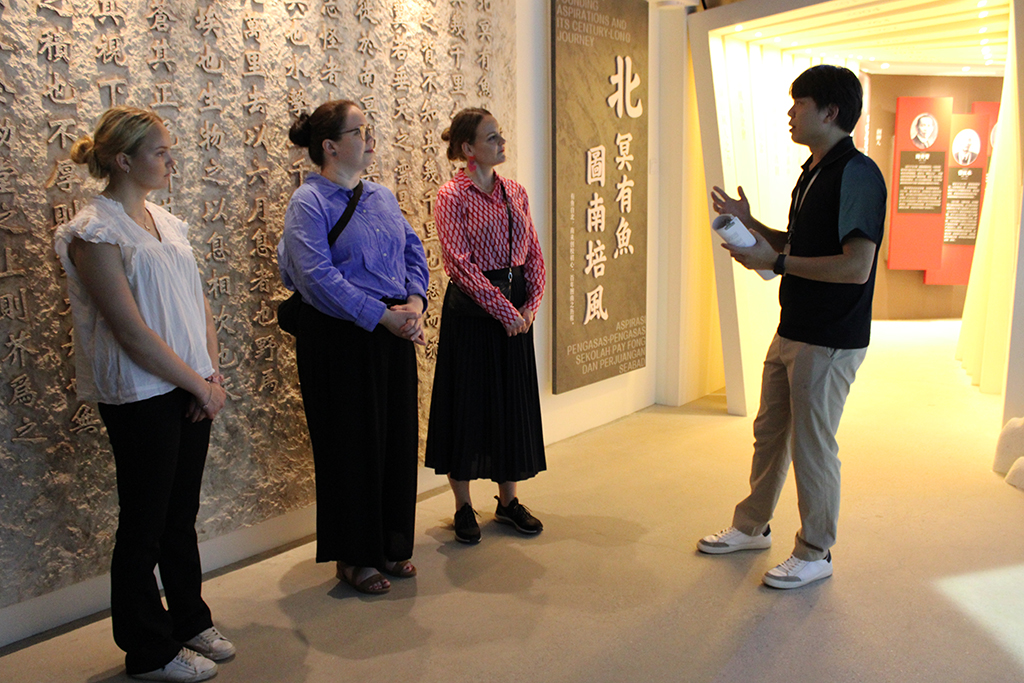在校史馆参观期间,两位教师在翁汶峯老师与卢育培老师的导览下,了解培风的发展历程,并围绕当代教育的发展趋势展开交流。